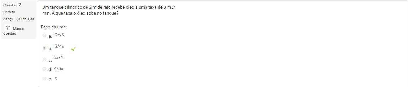 2 Um tanque cilíndrico de 2 m de raio recebe óleo a uma taxa de 3 m3/