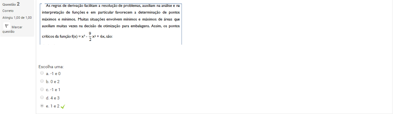 pontos máximos e mínimos. Muitas situações envolvem mínimos e máximos de áreas que auxiliam, muitas vezes, na decisão de otimização para embalagens. Assim, os pontos críticos da função f(x) x^3- 9/2 x^2+6x