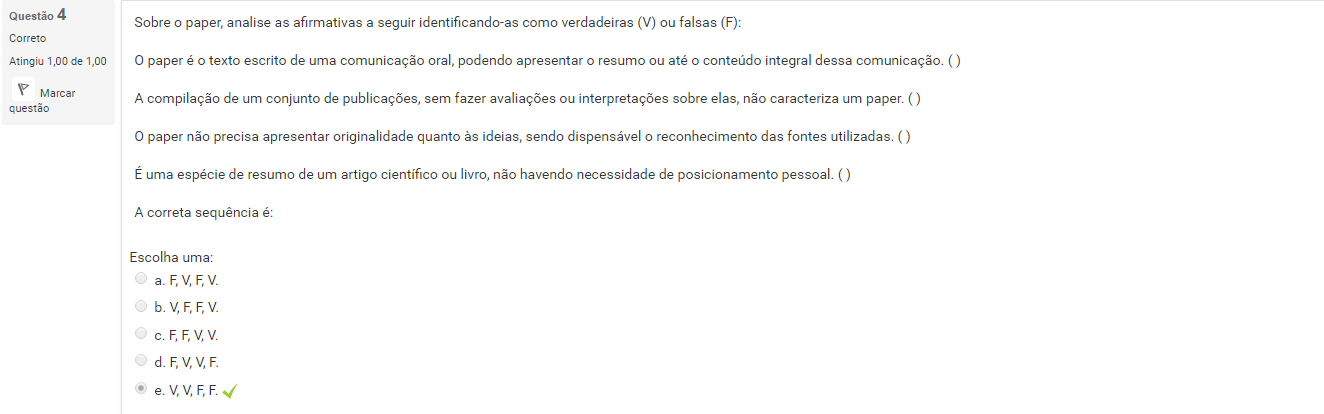 4 Sobre o paper, analise as afirmativas a seguir identificando-as como verdadeiras (V) ou falsas (F):