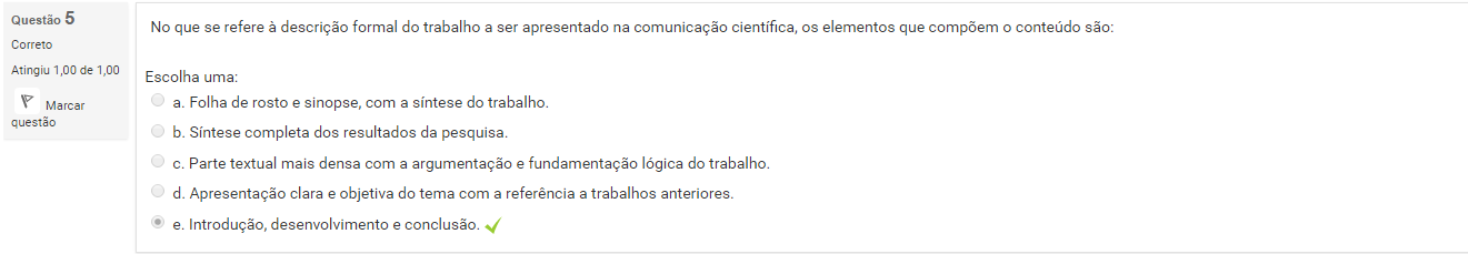 5 No que se refere à descrição formal do trabalho a ser apresentado na comunicação científica, os elementos que compõem o conteúdo são: