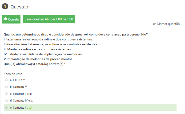 ( ) Visa à correção ou à prevenção de um risco que foi identificado.