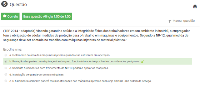 5 (TRF 2014 - adaptada) Visando garantir a saúde e a integridade física dos trabalhadores em um ambiente industrial, o empregador tem a obrigação de adotar medidas de proteção para o trabalho em máquinas e equipamentos. Segundo a NR-12, qual medida de segurança deve ser adotada no trabalho com máquinas injetoras de material plástico?