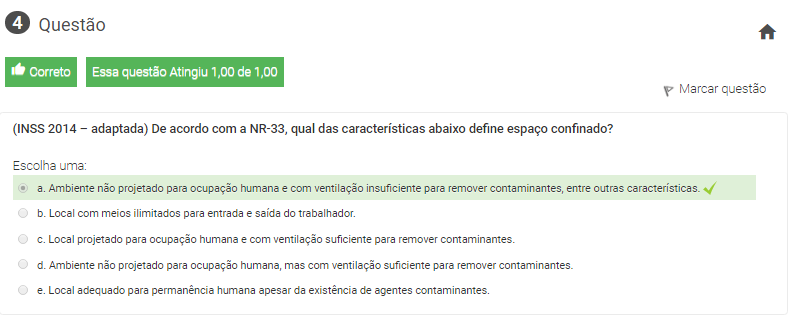 4 (INSS 2014 – adaptada) De acordo com a NR-33, qual das características abaixo define espaço confinado?