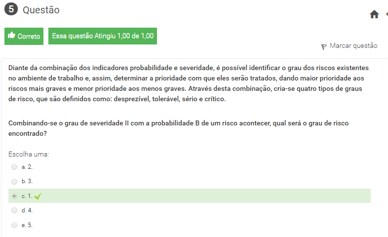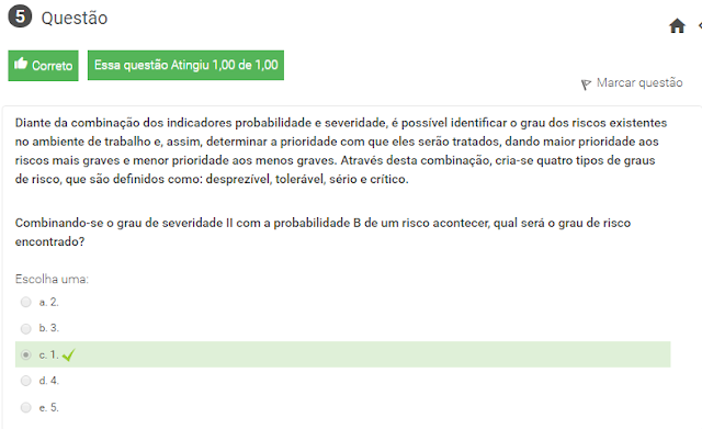 3 Diante da combinação de dois indicadores, probabilidade e severidade, é possível identificar o grau do risco presente no processo. Esse grau pode ser considerado como: