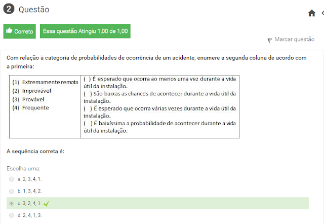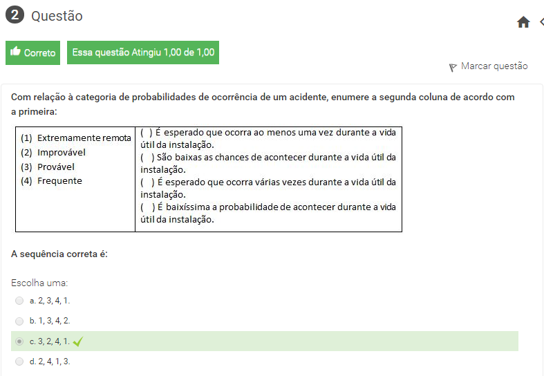 2 Com relação à categoria de probabilidades de ocorrência de um acidente, enumere a segunda coluna de acordo com a primeira:
