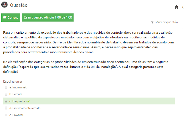 Na classificação das categorias de probabilidades de um determinado risco acontecer, uma delas tem a seguinte definição: “esperado que ocorra várias vezes durante a vida útil da instalação”. A qual categoria pertence esta definição?